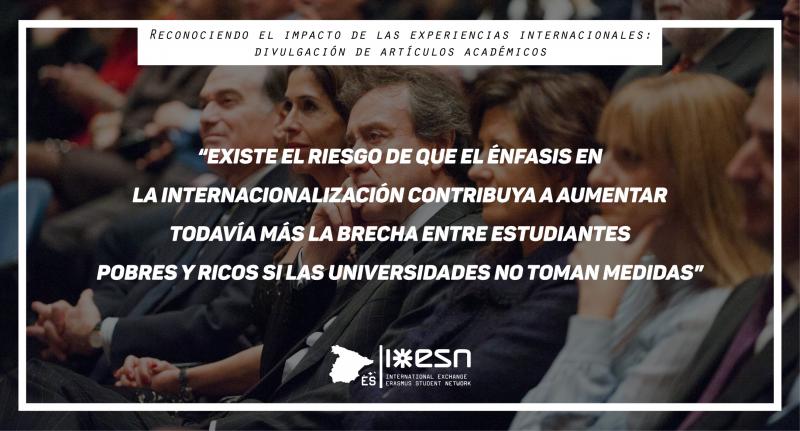 La propensión y la capacidad para participar en experiencias internacionales también están muy relacionadas. Los padres de un estudiante de clase media, que conocen los beneficios de la internacionalización y tienen capacidad económica para sufragar los estudios de sus hijos en el extranjero no dudarán en mandarlo de Erasmus. Esto raramente ocurrirá en una familia de clase trabajadora.