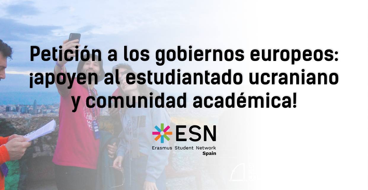 ESN España se une a ESN Internacional y a muchas otras asociaciones juveniles para formular nuestra petición a los gobiernos europeos: apoyen al estudiantado ucraniano y a su comunidad académica.